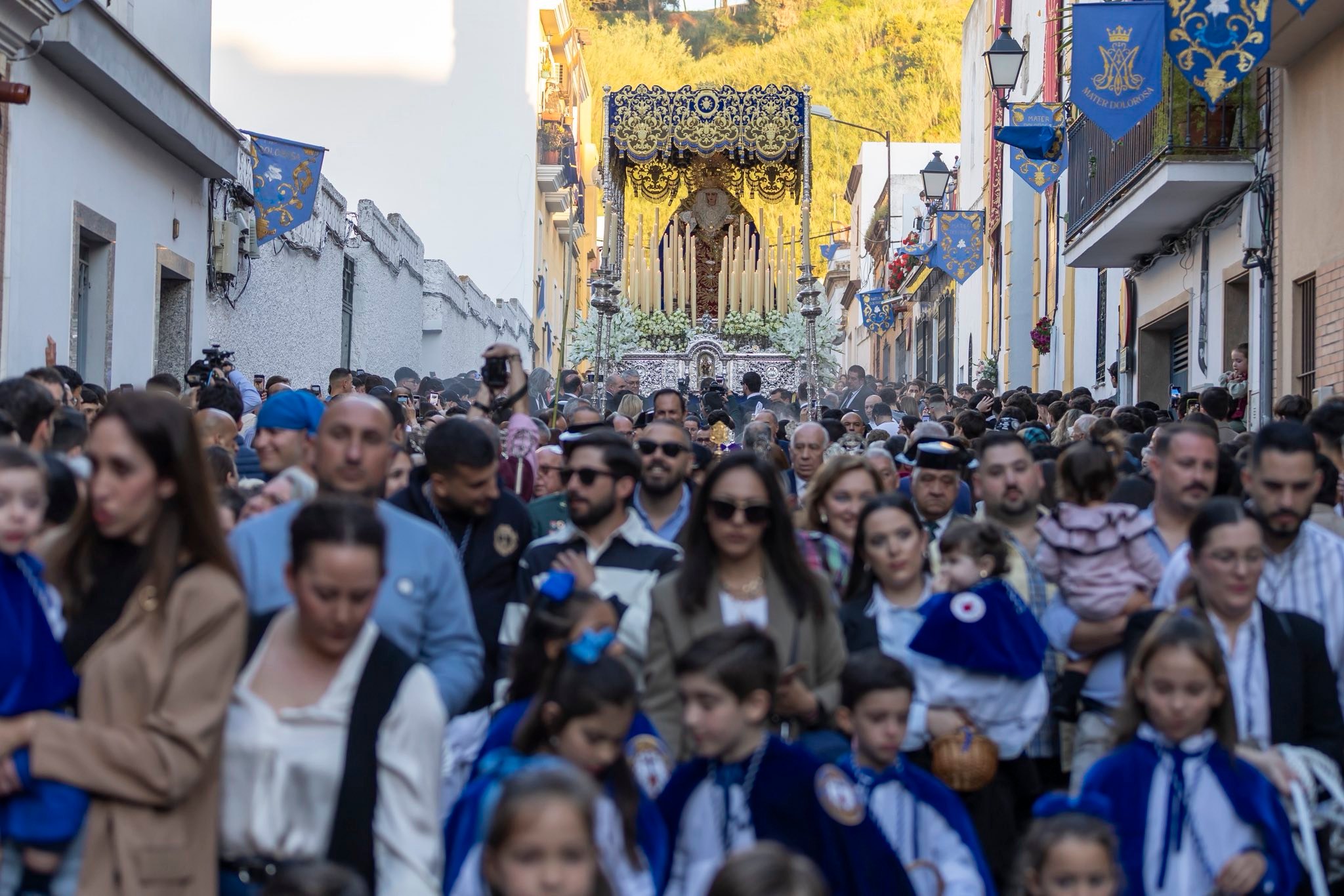 Entre los actos más destacados figuró la salida de Nuestra Señora de los Dolores desde su parroquia en Las Colonias, uno de los enclaves con mayor arraigo en esta jornada. El cortejo recorrió distintas calles del barrio acompañado por fieles, vecinos y representaciones cofrades, en un itinerario que se prolongó durante varias horas. Asimismo, otros puntos de la ciudad acogieron procesiones y actos organizados por hermandades y colectivos vecinales, reforzando el carácter popular de este día previo al Domingo de Ramos.
