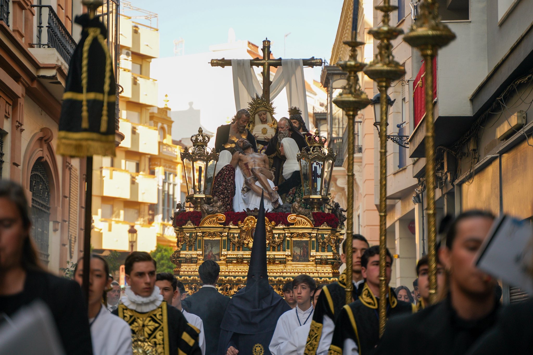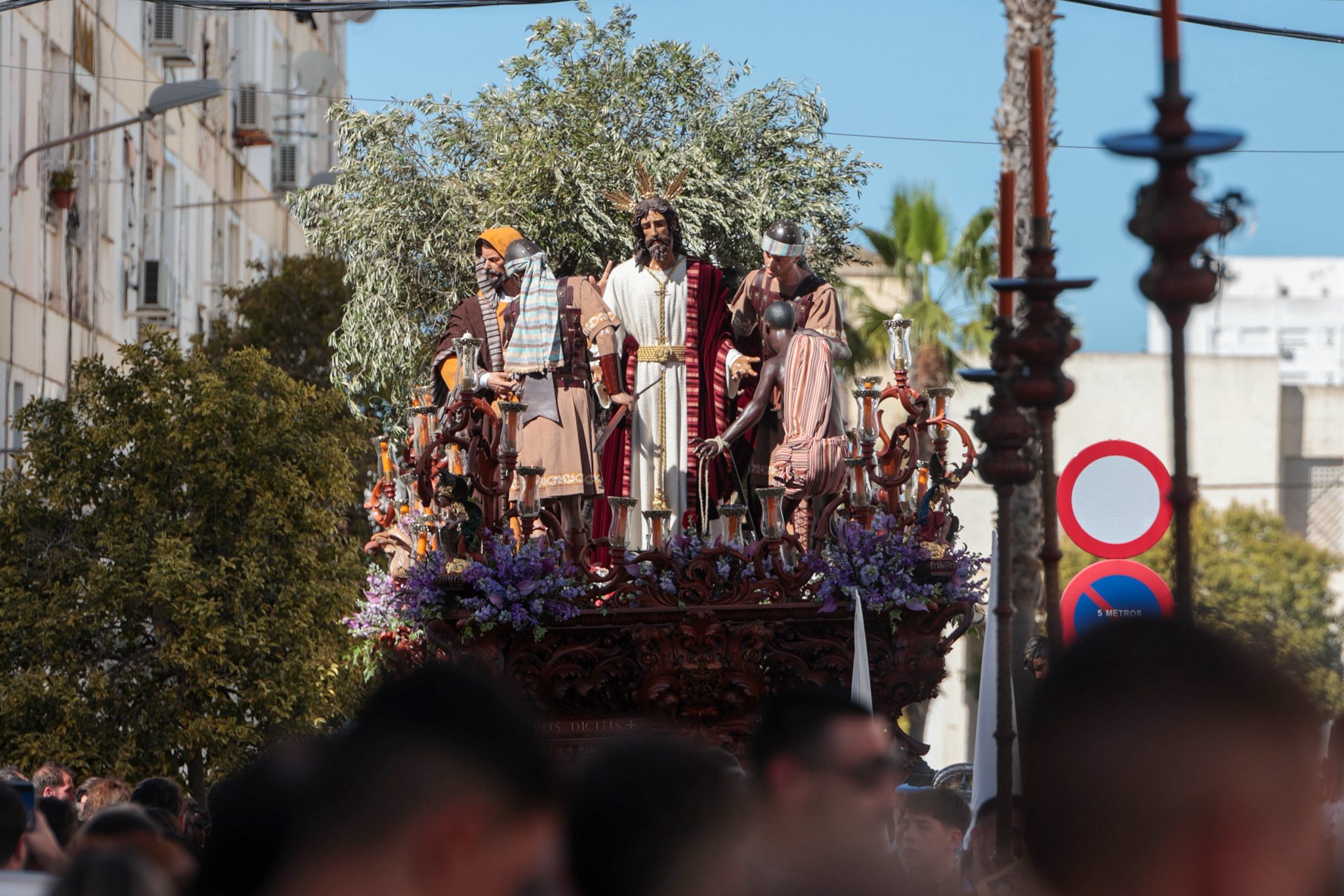La Victoria volvió a dejar una de las estampas más reconocibles del día con su paso por el arco del Barrio Obrero, arropada por un Polvorín completamente entregado. En paralelo, el Prendimiento volvió a reunir a su barrio en torno al paso de misterio, sostenido por doce trabajaderas y acompañado además por guiños de recuerdo a las víctimas del accidente de Adamuz. Más tarde, Santa Cruz puso la nota de recogimiento en el centro con una salida puntual y un cortejo de marcado carácter sobrio, mientras la ciudad aguardaba la llegada de la Esperanza, que volvió a congregar a cientos de personas en torno a su Virgen.
